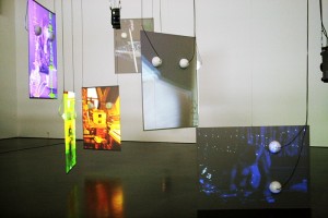 Es laufen Videoinstallationen, projiziert auf riesige Leinwände, die von der Decke schweben. Außerdem sind die Vorlagen einiger Albumcovers ausgestellt, wie von William S. Burroughs und Raymond Pattibon.